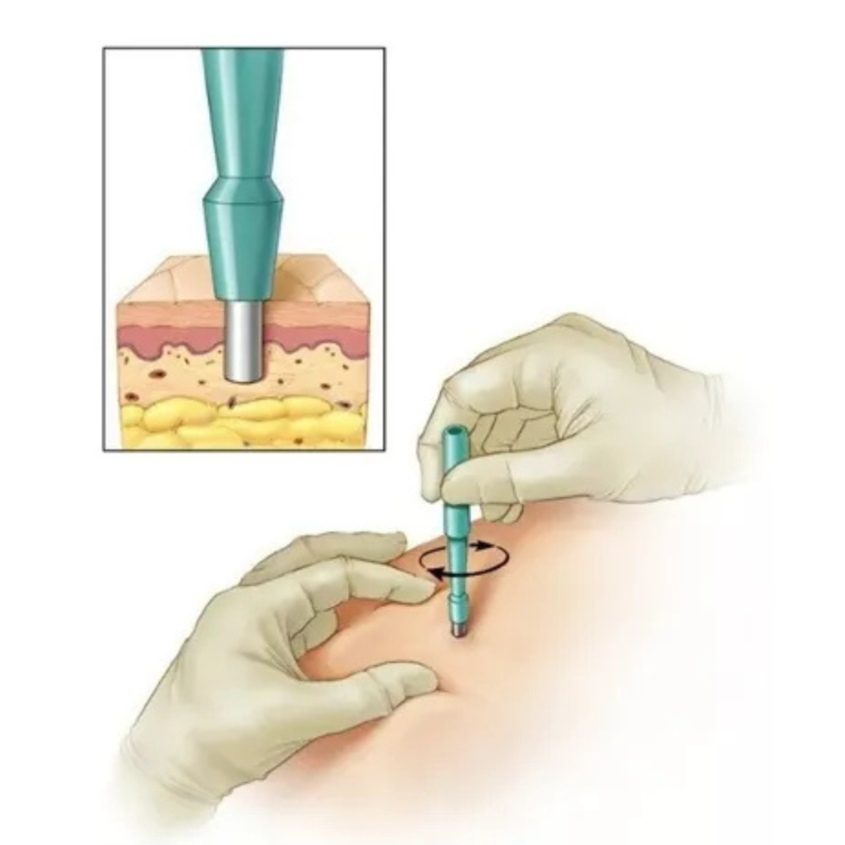 7. Após a profundidade desejada ser atingida, remover o Punch para biópsia.
