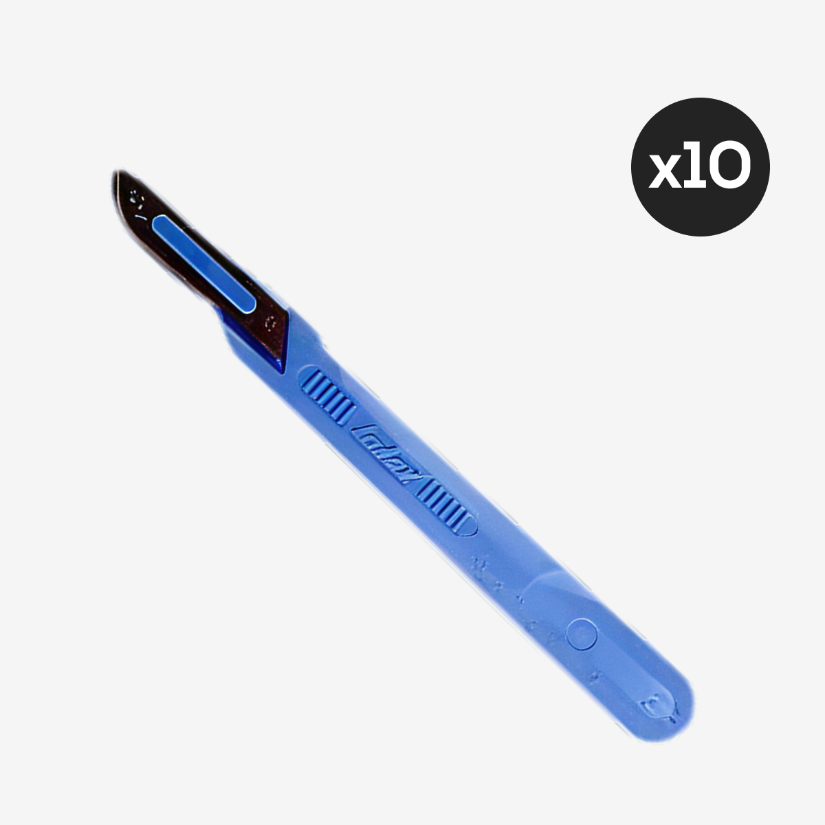 Bisturi Descartável Estéril C/ Cabo e Lâmina Aço Inox 10 Un